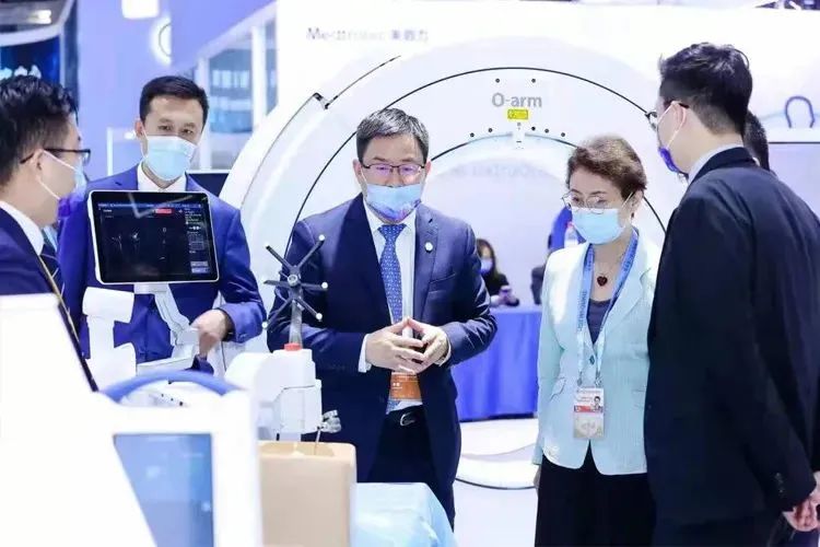 在美敦力展台,国药集团交易分团参观了解了MAZOR X 脊柱外科智能导航机器人、DIAMOND TEMP™ Ablation System钻石头温控冷盐水灌注射频消融系统等全球先进的创新医疗科技。