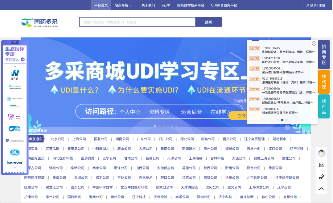 2020年,国药器械基于全国布局的供应链线下基建,推出了面向行业的线上医疗器械专业商城——国药多采,采用开放式和自营相结合,经过3年的运营积累,已开通各省市站点60+,2023年国药多采GMV59.4亿,正逐渐成长为数字化链接行业生态的专业平台。