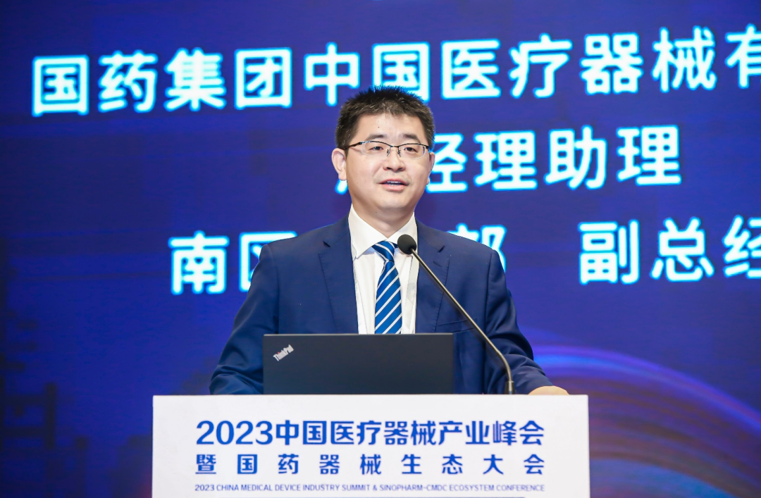 国药集团中国医疗器械有限公司总经理助理、南区事业部副总经理鲁保才分享了主题为“协同、聚力、创新、共享,让更多的民众享受更好的健康服务”的报告。他表示,国药器械作为国药集团、国药控股医疗器械板块的战略承载者,具有行业内成立最早、规模最大、覆盖最广、业务最专、实力最强的特点和优势。一直以来,国药器械秉持“护佑生命,关爱健康”的宗旨使命,“点强、网通、全国协同”立体式服务医院、政府、厂家,践行了“行业生态守护者、健康中国建设者、人类卫生健康共同体共建者”的责任和担当。面向未来,国药器械将持续专注医疗器械领域创新突破,充分运用国药集团全生命周期、全产业链、全生态圈整体优势,深化数字化转型,整合“产品、资金、服务、数据、工具”多种资源要素,打造行业生态新基建,与众多生态伙伴携手共进,为广大民众带来更好的健康服务。