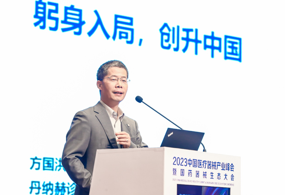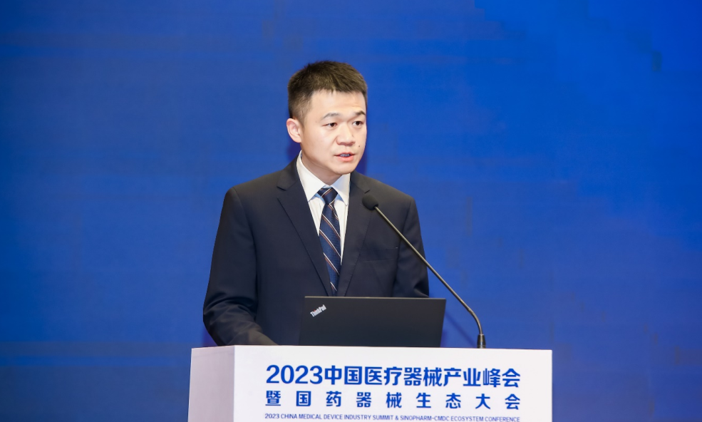 国药集团中国医疗器械有限公司党委副书记郭勇发表致辞。他指出,医疗装备产业是卫生健康事业的重要基础,事关人民群众生命健康和高质量发展全局。医疗器械设备行业的发展不仅仅是技术的革新,更是生态圈的构建。保证医疗器械的安全性和有效性、实现医疗器械的全生命周期管理、推动医疗器械创新和应用等,都需要构建一个开放、合作、共享的生态圈。本次大会以“聚力同行、赋能共赢”为主题,邀请了业界权威专家、行业协会代表及医疗器械知名公司企业家相聚郑州,集聚海内外医疗器械领域生态圈的优质资源,搭建产业、技术、渠道等多方合作交流的高端平台,共同探讨医疗器械设备行业的未来发展趋势、技术革新以及生态发展,共同谋划医疗器械设备全产业链生态建设的发展路径。国药器械期待通过这次论坛,与生态伙伴一起进一步推动产业协同、行业交融,共同推动医疗装备产业高质量发展,共创医疗器械行业美好。