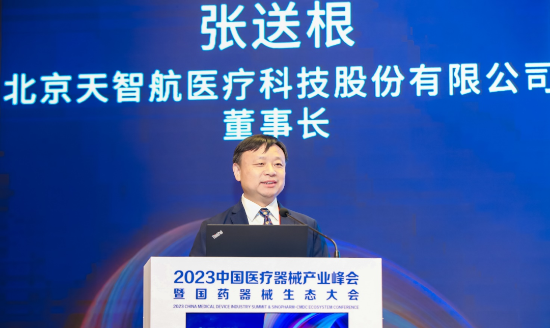北京天智航医疗科技股份有限公司董事长张送根分享了“手术机器人产业实践与创新”的主题演讲。他指出,手术机器人已成为国家医学科技创新水平的标志,对提高医疗服务能力、提升患者生活质量以及改善人民群众医疗体验具有重要作用。天智航作为手术机器人领军企业,以协同创新为驱动,研发了国际领先水平的天玑骨科手术机器人,全面覆盖创伤、脊柱和关节手术,引领骨科手术迈向机器人智能时代。