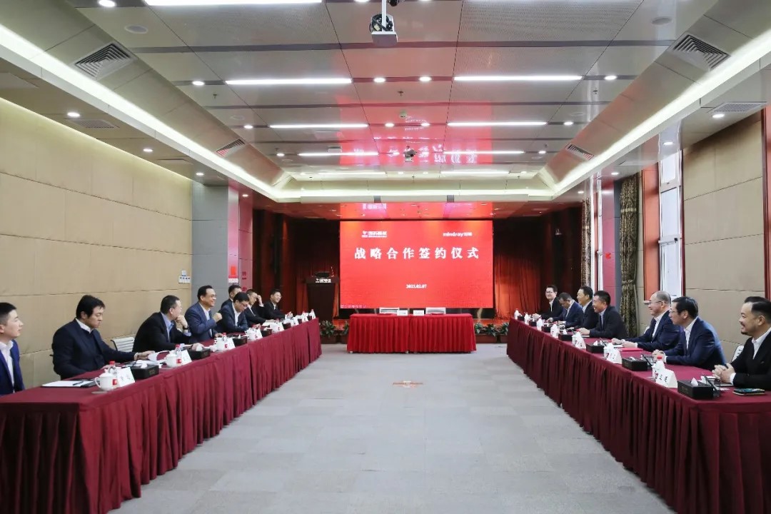 会谈后,双方举行了国药器械与迈瑞医疗战略合作协议签约仪式。国药控股董事长、党委书记于清明,国药控股副总裁、国药器械董事长、党委书记李杨,国药器械总经理、党委副书记章伟,迈瑞医疗总裁吴昊,中国区总经理赵宇翔等见证签约。国药器械副总经理张威和迈瑞医疗中国区公立客户部总经理杨征代表双方签约。