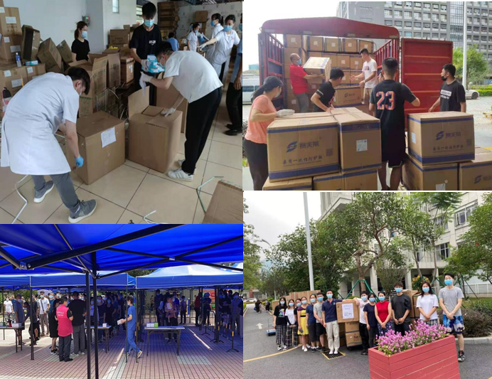 本次疫情发生以来国药器械广东公司物流中心、国药器械(佛山)物流中心员工放弃周末休息,加班加点坚守岗位,每天工作到凌晨3点,确保广佛两地医疗物资的供应。“物资保障的小伙伴们,你们辛苦了”这是深圳大学总医院医疗耗材供应保障部门一位负责人由衷发出的心声。国药集团中科器深圳有限公司同事发扬不怕苦不怕累的精神,夜班连着白班,凌晨1点接到任务,拣货到3、4点确保抗疫一线的物资供应,赢得深大总院的赞誉。国药集团深圳医疗器械有限公司在参加完深圳市龙岗区防疫物资保障组紧急电话会议后,迅速行动,加班加点,为龙岗区紧急调拨防疫物资:防护服11.5万套,手术衣15万套,防护口罩12万个,外科口罩140万个,医用口罩350万个,手术帽20万顶,手套20万套以及其他防疫物资一批,完满完成了防疫物资调配保障任务。第五,党组织和党员层面,充分发挥党建引领和党员示范作用,组织党员骨干投身疫情防控一线。同时,号召党员职工积极参与社区志愿服务,帮助指引市民有序进行核酸检测和疫苗接种,缓解属地人员不足的困难。
