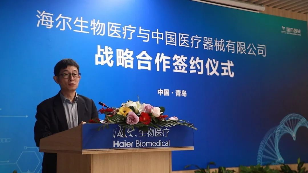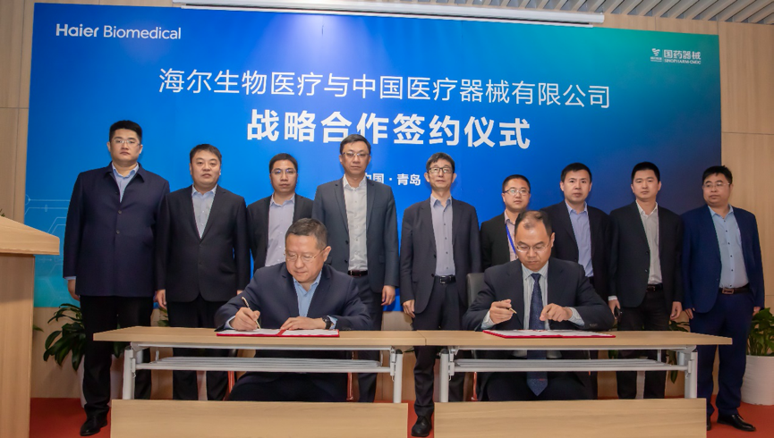 2021年4月1日,国药集团中国医疗器械有限公司(以下简称“国药器械”)与青岛海尔生物医疗股份有限公司(以下简称“海尔生物医疗”)在青岛签署战略合作协议。在国药控股副总裁、国药器械党委书记、总经理李杨,海尔生物医疗总经理刘占杰博士的共同见证下,国药器械副总经理王小明、海尔生物医疗副总经理陈海涛代表双方签约。