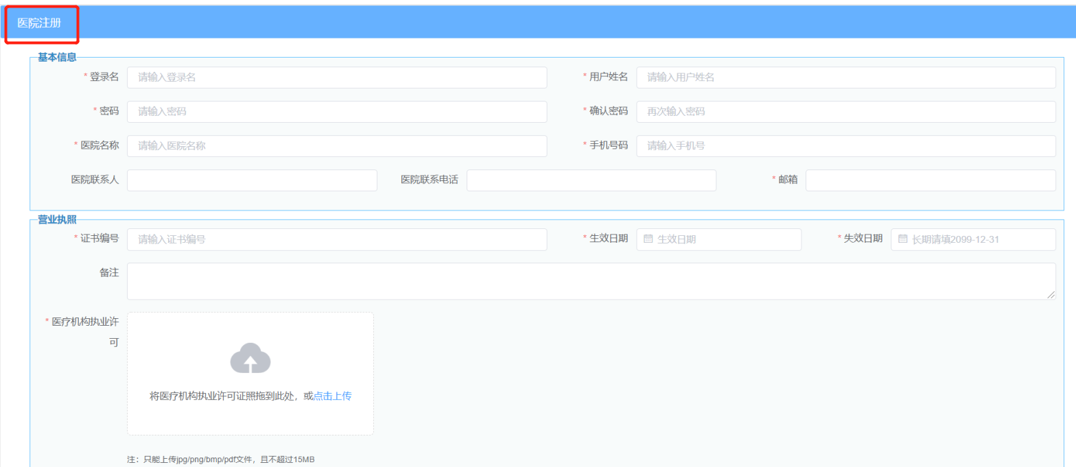 医院可以在资质管理模块里审核资质,平台分别在三个月,一个月,两周效期自动预警。