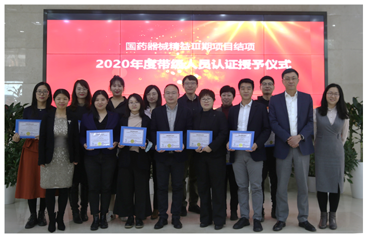 国药器械2020年度精益带级人员认证工作圆满收官,公司“精益百人”计划顺利达成。2月24日下午,国药器械党委书记、总经理李杨和党委副书记、副总经理刘亚芝在北京为获得认证的本部绿带人员颁发了认证证书。