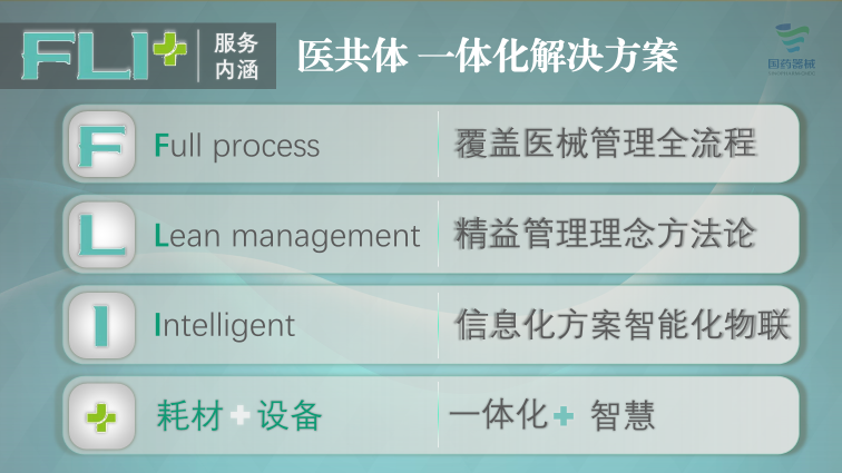 国药器械FLI+,以全流程、精益化、智能化为管理手段,构建创新管理模式,为县域医院、医共体的耗材与设备管理,打造【降本增效、精益合规、平战结合、属地管理】的全方位一体化解决方案。