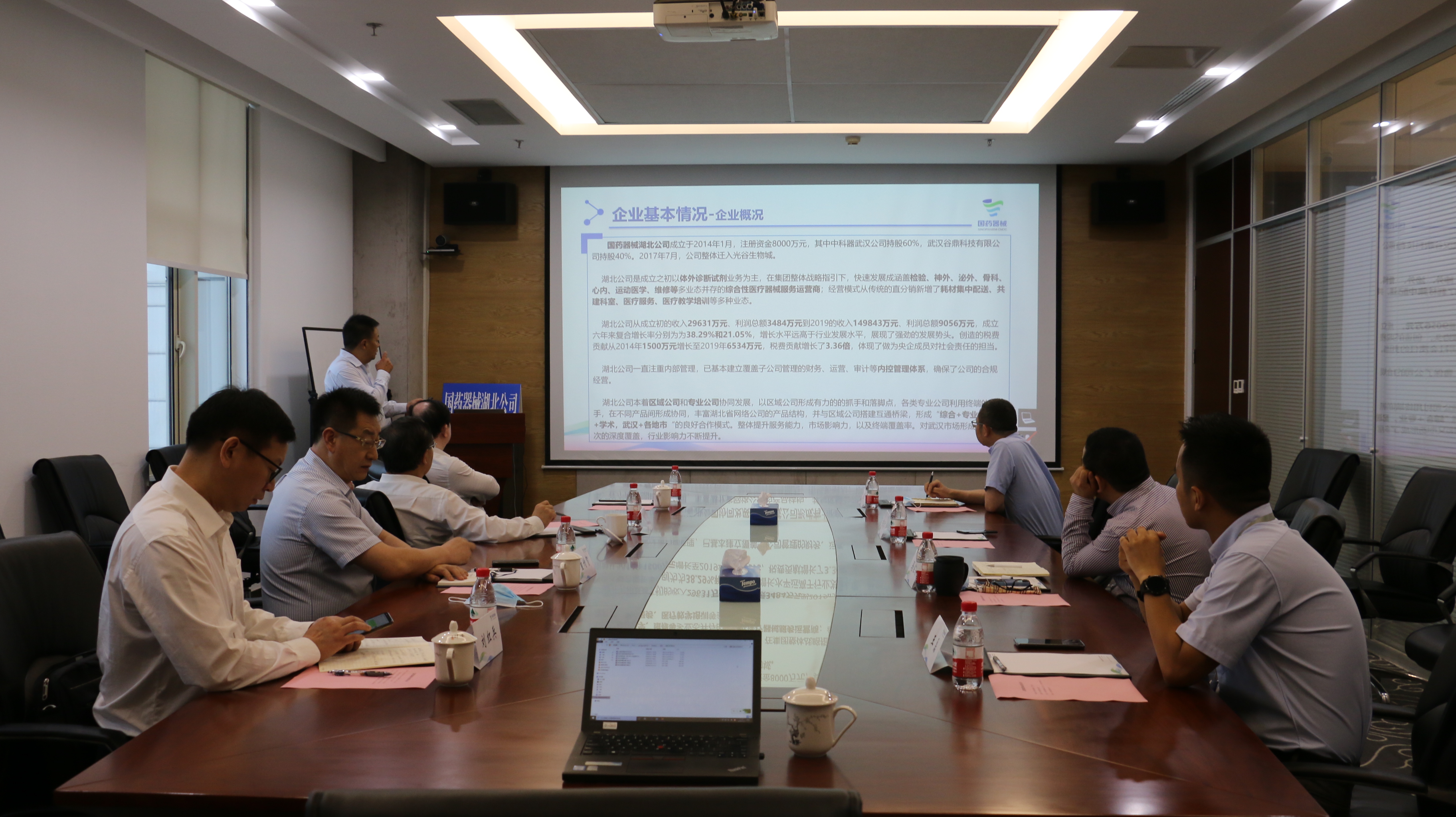 2020年7月2日,国药集团董事长刘敬桢、副总经理董增贺一行到国药集团湖北省医疗器械有限公司(以下简称“湖北公司”)、国药集团基因科技有限公司(以下简称“国药基因”)调研并座谈。