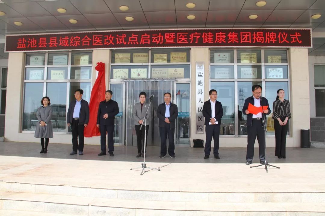 2019年4月18日,盐池县县域综合医改试点启动暨医疗健康集团揭牌仪式在县人民医院举行。作为全区综合医改试点县,盐池县大胆探索、勇于创新,积极推动组建医疗健康集团,不断提升医疗服务体系整体效能,切实满足群众健康需求。